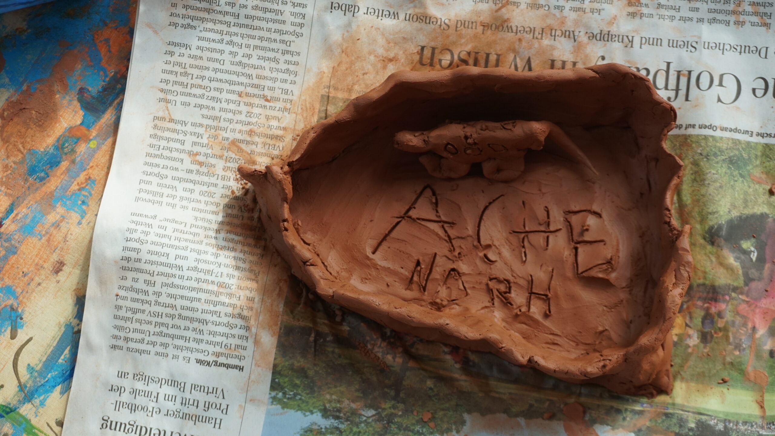 Neben Spielen, leckeren Laugensnacks und einer spannenden Geschichte wurden aus dem rot-braunen Töpferton richtige Kunstwerke geschaffen😍