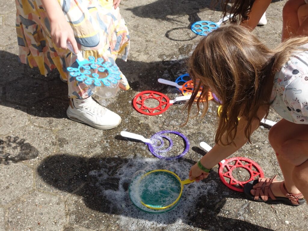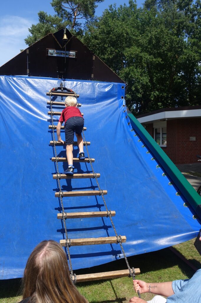 Ein buntes Rahmenprogramm sorgte außerdem für Spaß und gute Laune: es gab eine Hüpfburg und ein Klettergerüst, das nicht nur für kleine Besucher:innen eine Herausforderung war 😊, schillernde XXL-Seifenblasen und das „Schneller Flitschen Spiel“, bei dem möglichst schnell Holzpellets durch ein Tor gejagt werden.