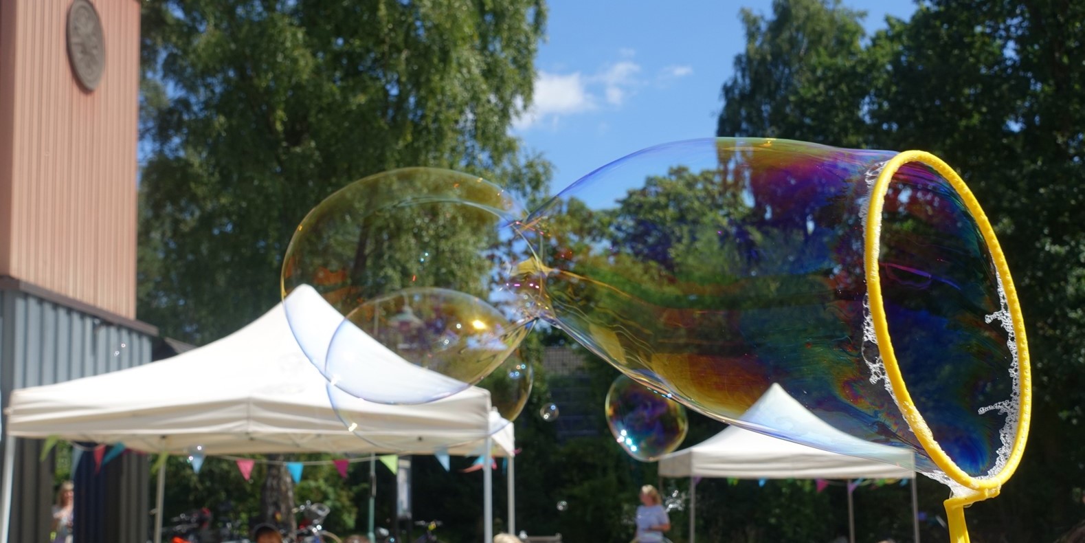 Ein buntes Rahmenprogramm sorgte außerdem für Spaß und gute Laune: es gab eine Hüpfburg und ein Klettergerüst, das nicht nur für kleine Besucher:innen eine Herausforderung war 😊, schillernde XXL-Seifenblasen und das „Schneller Flitschen Spiel“, bei dem möglichst schnell Holzpellets durch ein Tor gejagt werden.