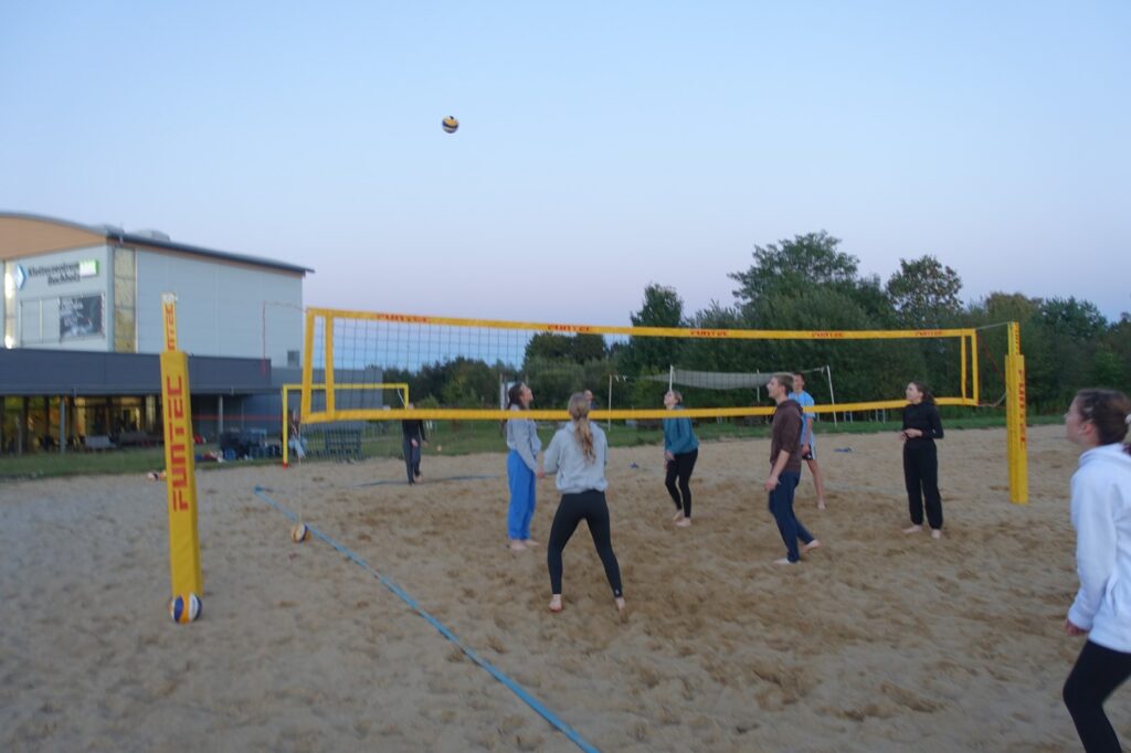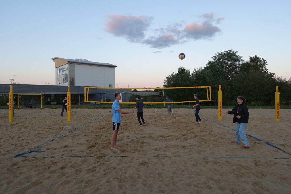 Wir trafen uns an den Beachfeldern neben dem Gebäude der Kletterhalle in Buchholz und sind in vier Teams gegeneinander angetreten. In drei Runden haben alle Teams einmal gegeneinander gespielt haben.