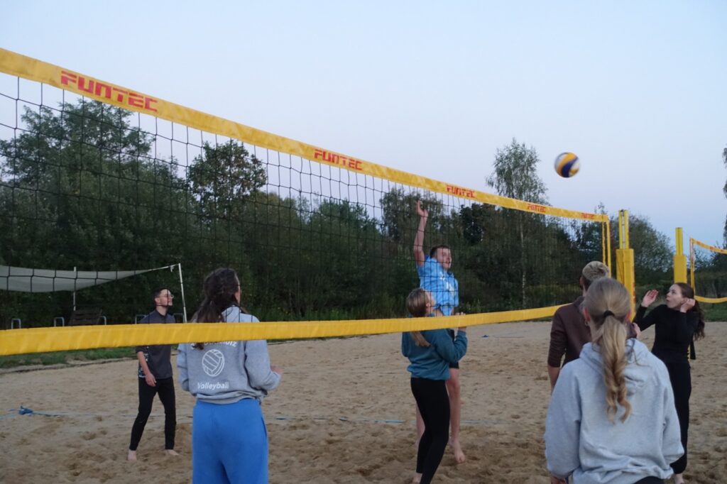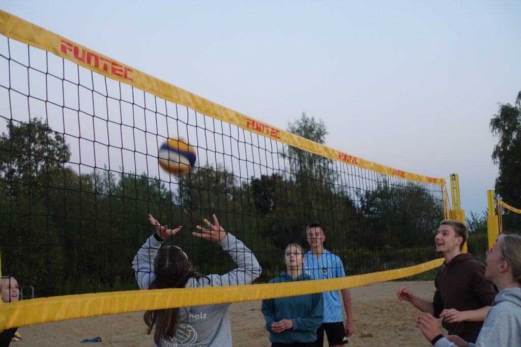 Der Sand war kalt und die Füße auch 😊, aber es war trotzdem für uns ein lustiger und spannender Abend, der uns als Team näher zusammengebracht hat, und das Spielen im Sonnenuntergang war ein wunderschöner Abschied dieses Sommers.
