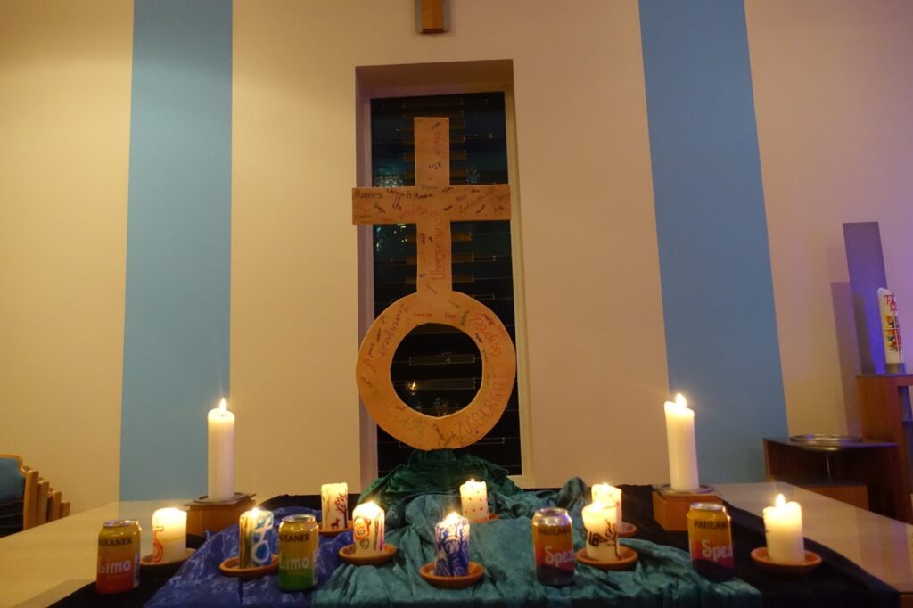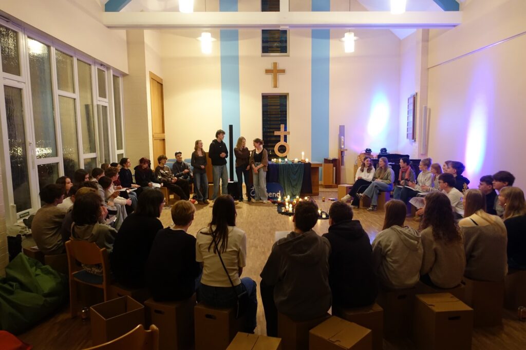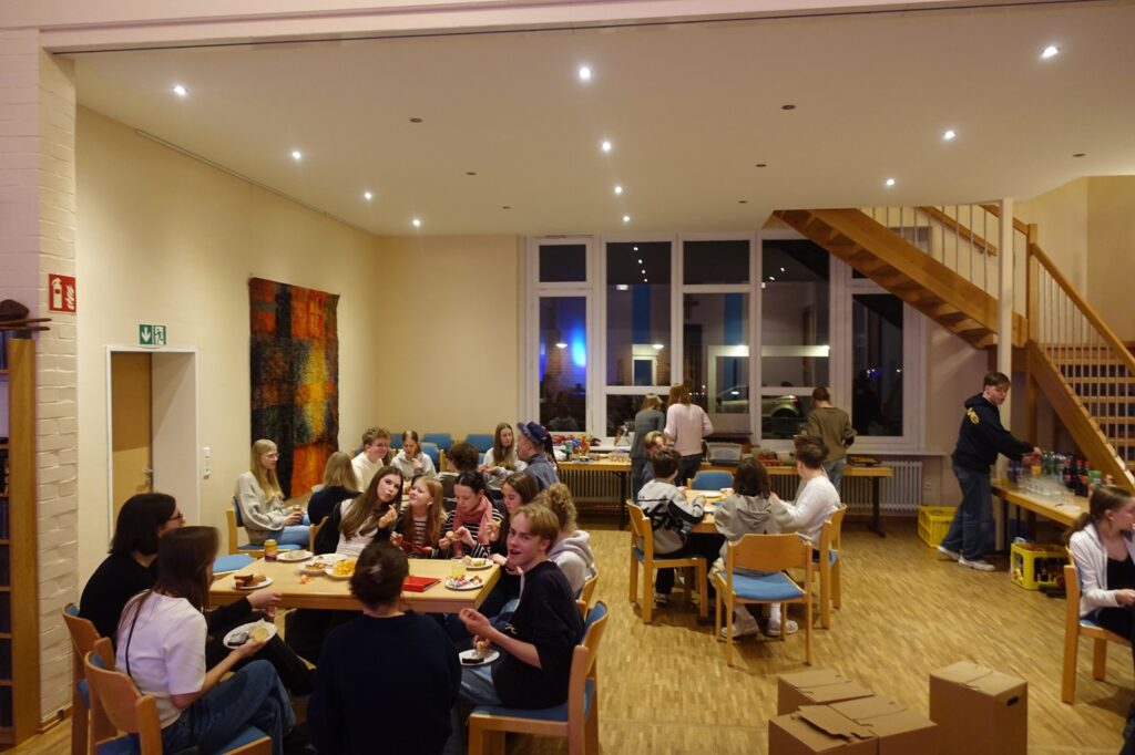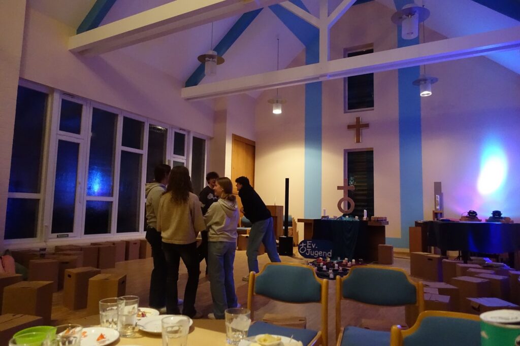 Gemeinsam feierten wir einen Jugendgottesdienst mit ZeitRäume-Andacht zum Thema „bewusste Entscheidung, Verantwortung und Gemeinschaft“, zu dem auch viele Jugendliche kamen, die schon länger bei der EvJ als Teamer:innen dabei sind. Wir versuchten gemeinsam, einen biblischen Impuls auf unsere heutige Lebensrealität zu übertragen: Entscheidungen lassen sich nicht beliebig aufschieben – sie brauchen Klarheit und Konsequenz! Unser Symbol als Bild für persönliche Entscheidung: eine Getränkedose! 😊