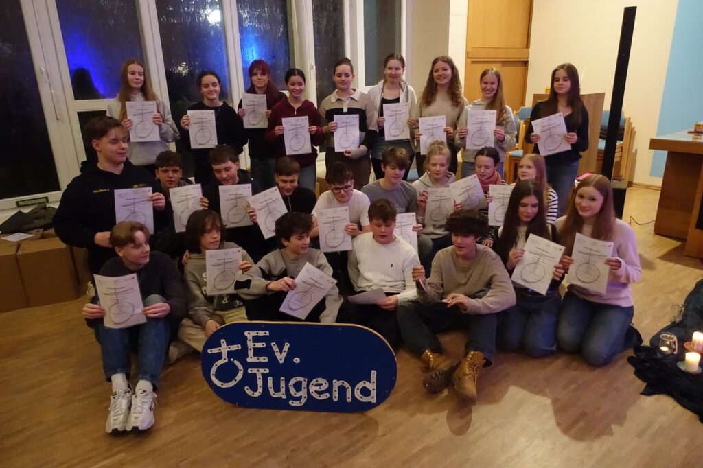 25 Jugendliche haben den Kurs erfolgreich abgeschlossen. Ein gutes halbes Jahr lang haben sie sich regelmäßig getroffen, um als ehrenamtliche Teamer:innen in der Ev. Jugend fit zu werden für die Begleitung von Aktionen, Freizeiten und Projekten. Im Kurs lernten sie u.a. Themen wie Gruppen- und Spielpädagogik, Spiritualität, Feedback und Recht kennen.